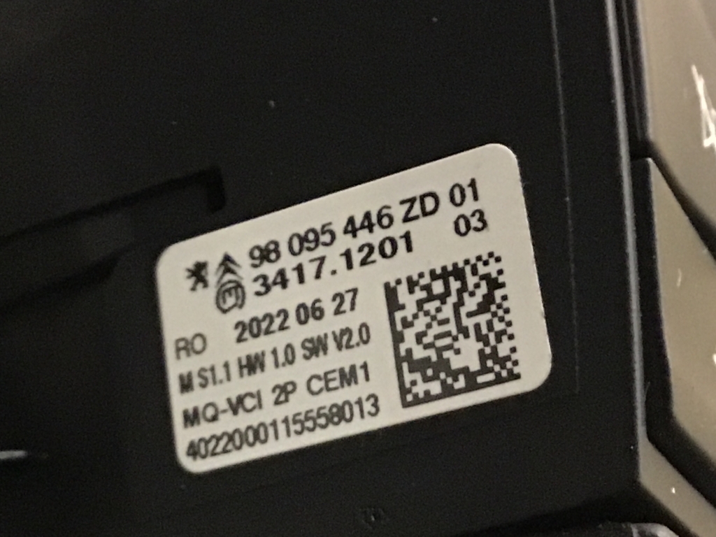 - - WS-IC : 0 08G059FQ1 - Model : VIVARO-E CA ED ENG 1.0E100T260 0BI - FABRIC TRITONE GREY : 10U - Casabl/Arctic/EisWeiss/Kaolin : 4KD - BLACK/BISE GREY INTERIOR : 6Y4 - Ersatzrad-Entfall : 8X6 - Entf.2.Sitzr. V : Entf.2+3.Sitzr 9D0 - PROV.ELEC. ARCHITECT. EE R3 : 9D9 - Entfall Innenrueckspiegel : A1A - BREAKING POINT CHANGE WINDOW 1 : A7E - Beifahrersitz 4-fach man einst : AKK - Windschutzscheibe PVC beschich : AKV - Verbundwindschutzscheibe : BODY05 - : CHO - Steuerungscode : CT3 - Ausfuehrung Deutschland : DFM - Schiebetuer manuell : DHG - Sonnenblende F&BF ohne Make up : ENGID : 105TDE50 - FJP - VEHICLE FUEL NONE : G02 - Movano Edition/K0 : Trmlevel2 J22 - ENGINEERING YEAR 2022 : LHD - Linkslenkung : MBM - MARKETING AREA EUROPE GROUP : MM1 - Ausstattungsteil Getriebe : MY : 2022 - MYSuffix : B - NF6 - ZERO EMISSION SYSTEM : OGA - Steuerungsschluessel OSV : T38 - Leseleuchten 3. Sitzreihe : T4A - BiHalog.-Scheinw/Halog.Scheinw : TAVT - Stoff Meltem Grau : TUU - Inneraumbeleuchtung hinten : VHP - CONVERSION HYDROGEN (PSA ONLY) : VIN10 : N - W4Y - Steuerungscode : WHC : VXE - Z86 - Schriftzug OPEL : 151 - VIN11 : Z - 204 - AXZ - Vehicle Type Commercial N1 : 1108 - 5LS - Optik Plus Paket/Design-Paket : 1906 - Y74 - Sicht-Ausstattung : 10623 - XIFE - L3 PAYL. INCR : 12500 - EQ9 - Unterfahrschutz Motorraum : 14700 - U91 - Dachantenne kurz : 15302 - D26 - Elektr.Aussenspiegel beheizbar : 18300 - T3U - Nebelscheinwerfer : 18604 - T83 - Automatisches Abblendlicht : 18913 - T7E - Tagfahrlicht LED : 19101 - CE1 - Regensensor : 20009 - B86 - Seitenschutzleiste Wagenfarbe : 21703 - B86 - Seitenschutzleiste Wagenfarbe : 22233 - AKN - Waermeschutzverglasung gruen : 22300 - AKN - Waermeschutzverglasung gruen : 24050 - U2Q - Digitaler Radioempfang DAB+ : 24602 - UW4 - Vier Lautsprecher : 25059 - U0R - Opel Connect : 25800 - UD5 - Parkpilot vorn und hinten : 25802 - UD5 - Parkpilot vorn und hinten : 25903 - UJO - Reifendruck-Kontrollsystem : 25906 - UJO - Reifendruck-Kontrollsystem : 25918 - UDD - Fahrerinstrum.Display : 26010 - IO6 - Navi900/Navi5.0/Multi.Nav.Pro : 26504 - IO6 - Navi900/Navi5.0/Multi.Nav.Pro : 26708 - K34 - Geschwindigkeitsregler : 26901 - AY0 - Airbags Vorn Seite & Kopf : 27195 - A6M - Fahrersitz mit Armlehne 3-fach : 27420 - AX6 - Trennwand geschl. ohne Fenster : 28901 - CJ2 - Klimatisierungsautomatik : 29003 - CJ2 - Klimatisierungsautomatik : 29500 - KA1 - Sitzheizung vorn : 32230 - A2V - Komfort-Fahrersitz 6-fach manu : 32591 - AQR - Beifahrersitz mit Armlehne : 34582 - 8W8 - Entfall Sitzbank 3.Reihe : 35001 - AEF - Fensterheber elektr. Beif. : 35004 - AXG - Fensterheber v Einklemmschutz : 35518 - KTF - Schluessel einklappbar : 36001 - J1W - 2 Fluegelt. hi 180° verblecht : 36207 - YA6 - Schiebetuer Beifahrerseite : 37708 - C95 - Innen- u. Leseleuchte vorn : 39811 - UL3 - 180 Grad Panorama Rueckfahrkam : 40803 - J71 - Elektrische Parkbremse : 41165 - UDQ - Toter Winkel Warner (bis 140) : 42303 - RQ6 - Erhoehte Nutzlast : 44106 - OLD - Roues 7JJX16-38 alu : 48202 - RVF - LM Raeder 7Jx17 : 48246 - RVF - LM Raeder 7Jx17 : 61835 - Q24 - Reifen 215 / 60 R17 C 104H : 68802 - KTI - Reifen-Reparatur-Set : 69307 - NK5 - Komfortlenkrad/3-Speichen-Lenk : 70308 - FX3 - Elekt.Stabilit.Prg(ESP/ESC) : 71687 - WHE - Radstand Large : 71835 - WHE - Radstand Large : 73204 - XZZP - Mode-2-Ladek.(1 8kW)HH-Steckd. : 73237 - K29 - On-Board Charger 3-phasig : 76400 - MS2 - TRANSMISSION AUTO REDUCER RG1A : 78090 - T2C - Paket Kaltes Wetter : 79766 - O3U&NF6 - ELEKTRO (100KW) : 99954 - COUNTRY : DE - |