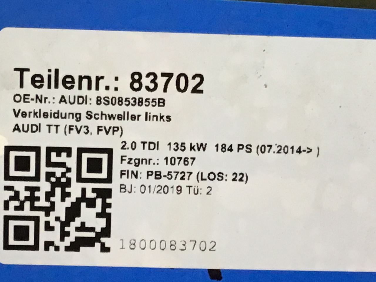 Verkleidung Schweller links AUDI TT (8S) 8S0853855B