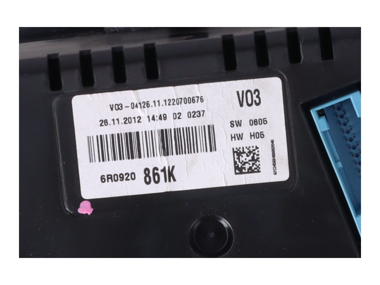 0A2 - 4 Türen : 0AR - Stabilisator vorn : 0BA - Ohne Stabilisator hinten : 0C0 - Standard : 0DF - Fahrzeugklassen-Differenzierung -6R0- für Bauzustand Europa : 0EJ - Einbau Differenzierung für Getriebe"MQ 250" -- Fahrzeugteile -- : 0F6 - Kraftstoffsystem Turbodiesel mit Direkteinspritzung (TDI) : 0FV - Fertigungsablauf Süd-Afrika : 0KA - Ohne Aufkleber und Embleme : 0N2 - Hinterachse verstärkt : 0NA - Ohne Schriftzugsatz (ohne Typbezeichnung) : 0P2 - Abgasendrohr mit Blende : 0RA - Ohne Zündanlaß/Schloß-Sperrsystem : 0TD - Fussmatten vorn und hinten : 0VC - Bordliteratur in deutsch : 0Y1 - Standard-Klimazonen : 0YA - Gewichtsbereich 1 nur Einbausteuerung keine Bedarfsprognose : 1AT - Elektronisches Stabilisierungsprogramm (ESP) : 1C1 - Frostschutz bis -25 Grad Celsius Toleranz bis -30 Grad C : 1D0 - Ohne Anhängevorrichtung : 1E0 - Ohne Aktivkohlebehälter : 1EX - Spezielles Typschild für EG für M1-Pkw : 1G8 - Pannen-Set : 1JR - Dämpfung hinten : 1KT - Scheibenbremsen hinten (Geomet D) : 1L0 - Normalluftfilter : 1MD - Lederlenkrad : 1N2 - Servolenkung elektro/hydraulisch : 1NL - Abdeckungen für Leichtmetallräder : 1PE - Radschrauben mit Diebstahlsicherung (nicht abschließbar) : 1Q0 - Ohne Tilgergewicht Lenkrad : 1S1 - Bordwerkzeug und Wagenheber : 1SA - Ohne zus. Triebwerks-Unterschutz : 1T3 - Verbandmaterial mit Warndreieck : 1W2 - Handschuhfach-Kühlung : 1Z0 - Serienkraftstoff-Erstbefüllung : 1ZC - Scheibenbremsen vorn (Geomet D) : 2A8 - Überführungsausrüstung -nasse Grenze : 2C5 - Lenksäule axial u.vertikal einstellbar : 2G5 - Einfüllstutzen-Modul 1 ohne Einsatz : 2JK - Stoßfänger Sport : 2KW - Aufkleber/Schilder deutsch-französisch- holländisch : 2LB - Kraftstoffbehälter mit besonderer Werkstoffbehandlung : 2P1 - Ladekantenschutz in Kunststoff : 2V5 - Frischluftansaugung mit Aktivkohlefilter : 2WK - zusätzliche Winterbereifung : 3B3 - Kindersitzverankerung : 3C7 - Dreipunkt-Automatikgurt für mittleren Fondsitz : 3FA - Ohne Dacheinsatz (Volldach) : 3GD - Ebener Ladeboden hinten : 3H0 - Ohne Lehnenentriegelung für Vordersitze : 3J1 - Kopfstützen für Vordersitze höhenein- stellbar : 3L3 - Höheneinstellung manuell für Vordersitze : 3M0 - Ohne Sonder-Maßnahmen : 3NC - Rücksitzbank/-lehne geteilt umlegbar : 3P1 - Halterung für Verbandkasten/Warndreieck : 3Q6 - Kopfstützen hinten (3 Stück) : 3S1 - Dachreling blank : 3U1 - Gepäckraumabdeckung klappbar : 3W3 - besondere Innengeräuschdämpfung : 3ZB - Dreip.Automaticgurte hinten außen mit ECE-Label : 4A3 - Sitzheizung für Vordersitze getrennt regelbar : 4AW - Tür und Seitenverkleidung : 4K3 - Zentralverriegelung m. Funkfernbedienung Innenbetätigung und Safesicherung : 4KF - Scheiben seitlich in Wärmeschutzver- glasung ab B-Säule und hinten dunkel : eingefärbt : 4L6 - Sicherheitsinnenspiegel automatisch abblendbar : 4LA - ohne Bedienelement : 4M0 - Ohne Becherhalter : 4N2 - Armaturentafel Standard : 4P2 - Modul Boden hinten Ausführung 3 : 4QV - Dreip.Automatikgurte vorn mit elektr. Gurtstraffer und Höheneinstellung : 4R3 - Fensterheber mit Komfortschaltung elektrisch : 4SD - Make-up-Spiegel links beleuchtet : 4TD - Make-up-Spiegel rechts beleuchtet : 4U5 - Gepäcktaschen an Rückenlehnen : 4UF - Airbag für Fahrer und Beifahrer mit Beifahrer-Airbag- Deaktivierung : 4X1 - Seitenairbag vorn : 5A6 - Gepäckraum-Komplettauskleidung in Vlies : 5C6 - Zusätzliche Karosseriemassnahmen : 5D1 - Trägerfrequenz 433 92 bis 434 42 Mhz : 5K7 - Transportschutzfolie (Mindestschutz) mit zus. : Transportschutzmaßnahmen : 5RQ - Aussenspiegel rechts konvex : 5SL - Außenspiegel links asphärisch : 6A0 - ohne Feuerlöscher : 6E1 - Mittelarmlehne vorn : 6EA - Ohne zus. Karosserieabdeckungen seitlich (Steinschlagschutz) : 6FH - Aussenspiegelgehäuse lackiert : 6KC - Kühlerschutzgitter : 6NA - Formteilhimmel ungeteilt : 6P1 - Kennzeichenträger hinten (ECE) : 6PC - Handbremshebelgriff in Leder : 6Q2 - Schalthebelknopf/-Griff in Leder : 6R1 - Schalthebelstulpe in Kunstleder : 6SC - Gepäckraumbodenbelag Nadelvlies : 6T0 - Ohne Innenleuchte im Fußraum : 6W1 - Kennzeichenträger vorn (groß) : 6XD - Außenspiegel elektr. einstell-/beheizbar : 6Y0 - ohne Geschwindigkeitswarnanlage : 7A0 - Ohne CD-Wechsler/CD-Player : 7AA - Wegfahrsperre elektronisch : 7B0 - ohne Steckdose : 7E6 - Elektrische Luftzusatzheizung : 7K6 - Reifenkontrollanzeige : 7L3 - Ohne Start/Stopp-Anlage ohne Rekuperation : 7M5 - ohne Trittschutzfolie für Türeinstieg : 7MQ - Abgaskonzept EU5 mod : 7P0 - Ohne Lendenwirbelstütze in den Sitzlehnen : 7PA - Plattformgruppenklasse 1 : 7QL - Datenträger für Europa-West integriert : 7UC - Navigationssystem "RNS315" (Datenträger integr.) : 7V1 - Instrumentenbeleuchtung Standard : 7X1 - Einparkhilfe : 8AY - Radio Navigationssystem : 8BG - Doppelscheinwerfer Rechtsverkehr mit integr.Fernscheinwerfer : 8CC - Tachogeber ohne Plombierung (elektronischer Tachogeber) : 8GU - Drehstromgenerator 140 A : 8M1 - Heckscheiben-Wisch-Waschanlage mit Intervallschaltung : 8N3 - Scheibenwischer-Intervallschaltung mit Regensensor : 8Q1 - Leuchtweitenregulierung : 8RL - 6 Lautsprecher (passiv) : 8S3 - Zusätzliche Leseleuchten hinten : 8SG - SBBR-Leuchten Normalausführung (Ausf.2) : 8T2 - Geschwindigkeitsregelanlage (GRA) elektronisch : 8TC - Nebelschlussleuchte Rechtsverkehr : 8W1 - Waschwasser-Standanzeige : 8WB - Nebelscheinwerfer : 8X1 - Scheinwerferreinigungsanlage : 8Y1 - Doppelton-Signalhorn : 8Z5 - nicht Heissland : 8ZH - Antenne für AM/FM Empfang Diversity : 9AK - Climatronic mit Stauluftregelung FCKW-frei : 9E1 - Gepäckraumbeleuchtung : 9GA - Innenleuchte m. Kontaktschaltern/Türen : 9I0 - Dauerfahrlichtschaltung : 9JA - Nichtraucherausführung : 9P3 - Gurtkontrolle E-Kontakt im Gurtschloss : 9Q1 - Multifunktionsanzeige/Bordcomputer : 9T1 - Scheibenwaschdüsen beheizbar vorn : 9U0 - Ohne Bremsbelagverschleißkontrolle : 9WC - Ohne Multimedia" im Fahrzeug : 9ZT - Vorbereitung für Telefon UHV-Intern mit Sprachbedi