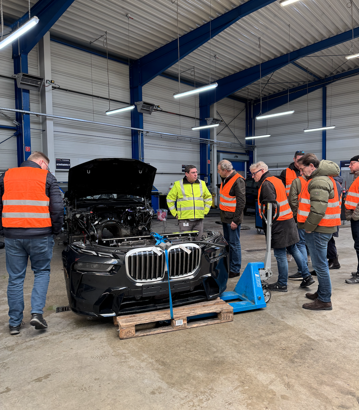 Besonders gefreut hat uns, dass auch Olivier Wohlfahrt von net.casion und Oliver Hallstein von ClaimParts bei diesem Termin vor Ort in Meppen dabei waren. Gemeinsam mit unseren Gästen vom BVSK ergab sich so ein vielseitiger Austausch entlang der gesamten Wertschöpfungskette – von der Schadenaufnahme über die Teileauswahl bis hin zur Umsetzung in der Werkstatt.