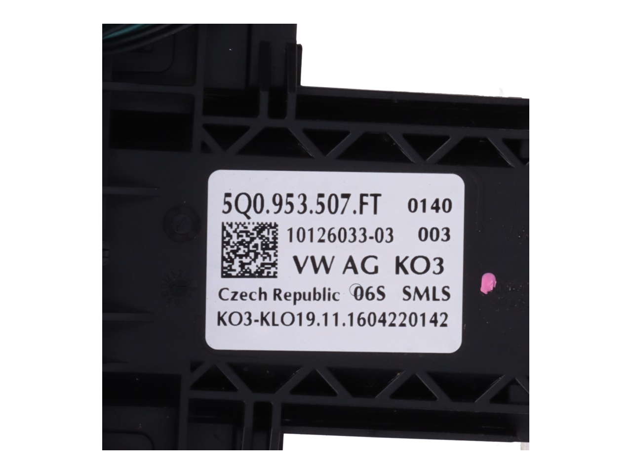 0A2 - 4 Türen : 0AD - Stabilisator vorn : 0B1 - Radstand : 0BM - Stabilisator hinten : 0EJ - Einbau Differenzierung für Getriebe"MQ 250" -- Fahrzeugteile -- : 0FA - Fertigungsablauf Standard : 0K0 - Ohne alternativ-Antriebssystem : 0N4 - Vier-Lenkerachse : 0NA - Ohne Schriftzugsatz (ohne Typbezeichnung) : 0P1 - Abgasendrohr seitlich hinten : 0TP - Fussmatten vorn und hinten : 0VC - Bordliteratur in deutsch : 0Y1 - Standard-Klimazonen : 0YC - Gewichtsbereich 3 nur Einbausteuerung keine Bedarfsprognose : 1A5 - Kraftstoffsystem Otto-Einspritzer : 1AS - Elektronisches Stabilisierungsprogramm (ESP) : 1D0 - Ohne Anhängevorrichtung r 1E1 - Aktivkohlebehälter : 1EX - Spezielles Typschild für EG für M1-Pkw : 1G6 - Reserverad platzsparend : 1JA - Dämpfung hinten Basis 1 : 1KE - Scheibenbremsen hinten : 1N3 - Servolenkung geschwindigkeitsabhängig (Servotronic) : 1NL - Abdeckungen für Leichtmetallräder : 1PF - Radschrauben Standard : 1Q0 - Ohne Tilgergewicht Lenkrad : 1S1 - Bordwerkzeug und Wagenheber : 1SA - Ohne zus. Triebwerks-Unterschutz : 1T9 - Verbandmaterial mit Warndreieck und Warnweste : 1U8 - Ohne Klapptisch an Vordersitzlehne : 1W2 - Handschuhfach-Kühlung : 1X0 - Frontantrieb : 1Y3 - Differenzialsperre ( XDS ) Dynamische Traktions Hilfe : 1Z0 - Serienkraftstoff-Erstbefüllung : 1ZE - Scheibenbremsen vorn (Geomet D) : 20A - Ohne Elektromotor ( Hybrid ) : 2A0 - Ohne Überführungsausrüstung : 2G7 - Einfüllstutzen-Modul 1 mit Einsatz : 2H0 - Ohne "drive select" : 2JB - Stoßfänger Standard : 2KW - Aufkleber/Schilder deutsch-französisch- holländisch : 2V5 - Frischluftansaugung mit Aktivkohlefilter : 2WA - ohne zusätzliche Bereifung : 2ZH - Ledermultifunktionslenkrad : 31F - Kennzeichenträger vorn (groß) : 3B4 - Kindersitzverankerung für Kindersitzsystem ISO FIX : 3C7 - Dreipunkt-Automatikgurt für mittleren Fondsitz : 3CA - ohne Trennwand : 3D3 - Mittelkonsole : 3FA - Ohne Dacheinsatz (Volldach) : 3H0 - Ohne Lehnenentriegelung für Vordersitze : 3L3 - Höheneinstellung manuell für Vordersitze : 3NU - Rücksitzbank ungeteilt Lehne geteilt umlegbar mit Mittelarmlehne : 3QT - Dreip.Automatikgurte vo.m.Gurtstraffer und Höheneinstellung : 3S0 - Ohne Dachreling / Dachlastträger : 3T2 - Kopfstützen hinten (3 Stück) : 3ZB - Dreip.Automatikgurte hinten außen mit ECE-Label : 41Q - Leichtmetallräder 6 1/2J x 16 : 4A3 - Sitzheizung für Vordersitze getrennt regelbar : 4AF - Tür und Seitenverkleidung Schaumfolie und Gewebe : 4GF - Frontscheibe Wärmeschutzglas : 4I2 - Zentralverriegelung m. Funkfernbedienung Innenbetätigung ohne Safesicherung : 4KF - Scheiben seitlich in Wärmeschutzver- glasung ab B-Säule und hinten dunkel : eingefärbt : 4L6 - Sicherheitsinnenspiegel automatisch abblendbar : 4P0 - Modul Boden hinten Ausführung 1 : 4R4 - Fensterheber mit Komfortschaltung und Abschaltsicherung elektrisch : 4UP - Airbag für Fahrer und Beifahrer mit Knieairbag u.Beifahrer- Airbag- Deaktivierung : 4X3 - Seitenairbag vorn mit Kopfairbag : 5C0 - ohne besondere Karosseriemassnahmen : 5D1 - Trägerfrequenz 433 92 bis 434 42 Mhz : 5J0 - ohne Heckspoiler : 5K0 - Ohne Oberflächenschutz mit zusätzlichen Transportschutzmaßnahmen : 5RQ - Aussenspiegel rechts konvex : 5SL - Außenspiegel links asphärisch : 5XJ - Sonnenblenden mit Spiegel beleuchtet mit Airbag-Label auf Sonnenblende und B- : Säule : 5ZF - Kopfstützen vorn : 6A0 - ohne Feuerlöscher : 6E3 - Mittelarmlehne vorn : 6FF - Aussenspiegelgehäuse und diverse Anbauteile in Wagenfarbe : 6K0 - ohne Frontassist/ohne City-ANB : 6KC - Kühlerschutzgitter : 6NA - Formteilhimmel ungeteilt : 6Q2 - Schalthebelknopf/-Griff in Leder : 6T0 - Ohne Innenleuchte im Fußraum : 6XQ - Außenspiegel mit Memoryfunktion elektrisch anklapp-/einstellbar separat beheizbar : 7AA - Wegfahrsperre elektronisch : 7B2 - 12 Volt-Steckdose im Kofferraum : 7E0 - Ohne Wärmespeicher/Zusatzheizung : 7K1 - Reifendruckkontrolle : 7L6 - Start/Stopp-Anlage mit Rekuperation : 7LG - Fahrzeugklassen-Differenzierung -5G0- : 7MM - Abgaskonzept EU6 plus : 7P4 - Lendenwirbelstütze manuell einstellbar in Vordersitzlehnen : 7RE - SD-Karte (Europa) : 7TC - Dekor-Einlagen : 7UF - Navigationsgerät-Standard : 7W0 - Ohne erweitertem Sicherheitssystem : 7X2 - Einparkhilfe vorn und hinten : 7Y0 - ohne Spurwechselassistent : 8G1 - Fernlichtassistent : 8GU - Drehstromgenerator 140 A : 8ID - Halogen-Doppelscheinwerfer : 8K3 - Tagesfahrlicht mit Assistenzfahrlicht und coming home Funktion : 8M1 - Heckscheiben-Wisch-Waschanlage mit Intervallschaltung : 8N6 - Scheibenwischer-Intervallschaltung mit Licht/Regensensor : 8Q1 - Leuchtweitenregulierung : 8RM - 8 Lautsprecher ( passiv ) : 8S4 - 2 Leseleuchten vorn 2 hinten : 8SA - SBBR-Leuchten Normalausführung : 8T6 - Geschwindigkeitsregelanlage plus Speed-Limiter : 8TB - Nebelschlussleuchte : 8W1 - Waschwasser-Standanzeige : 8WH - Nebelscheinwerfer und Abbiegeleuchte : 8X1 - Scheinwerferreinigungsanlage : 8Y1 - Doppelton-Signalhorn : 8Z5 - nicht Heissland : 8ZQ - Antenne nur für FM Empfang Diversity : 9AK - Climatronic mit Stauluftregelung FCKW-frei : 9D0 - ohne Vorbereitung Einbau Funkgerät : 9F0 - Ohne Vorbereitung Rundumtonkombination und ohne Funkantenne : 9IE - Telefonvorbereitung für Handy mit WLAN (BT-Schnittstelle) : 9JB - Raucherausführung Ascher vorn und hinten : 9M0 - Ohne Zusatz-/Standheizung : 9P3 - Gurtkontrolle E-Kontakt im Gurtschloss : 9S6 - Multifunktionsanzeige/Bordcomputer "Colour" : 9T1 - Scheibenwaschdüsen beheizbar vorn : 9TC - Zus.Rückstrahler (Türbereich) : 9U1 - Bremsbelagverschleißkontrolle : 9WC - Ohne Multimedia" im Fahrzeug : 9Z0 - Betriebsspannung 12 V : A68 - Kategorie 8 : A8C - Komfortausstattung : AV1 - Rechtsverkehr : B01 - Typprüfland Deutschland : B0A - Bauteilesatz ohne länderspezifische Bauvorschrift : C23 - Betriebserlaubnis Nachtrag : DG6 4-Zylinder-Ottomotor 1 4L/110 KW TSI GM ist : TL9/TL1/TK8/TW8/TL8/T28 E0P - Allstar : EA8 - Anschlussgarantie 3 Jahre max. 100.000 km : EF0 - ohne ECO