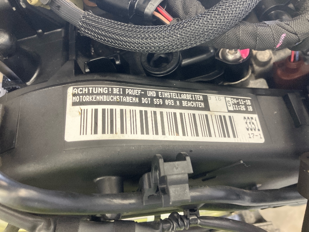 0A2 - 4 Türen : 0AF - Stabilisator vorn : 0B2 - Radstand : 0BA - Ohne Stabilisator hinten : 0EJ - Einbau Differenzierung für Getriebe"MQ 250" -- Fahrzeugteile -- : 0F5 - Kraftstoffsystem Diesel : 0FA - Fertigungsablauf Standard : 0K0 - Ohne alternativ-Antriebssystem : 0MU - Fahrzeugklassen-Differenzierung -2GA- : 0N1 - Hinterachse "Standard" : 0NB - Schriftzugsatz in Grundausführung : 0P7 - Abgasendrohr hinten : 0SB - Aufkleber/Schilder in deutsch : 0TD - Fußmatten vorn und hinten : 0VC - Bordliteratur in deutsch : 0Y1 - Standard-Klimazonen : 0YD - Gewichtsbereich 4 nur Einbausteuerung keine Bedarfsprognose : 1AT - Elektronisches Stabilisierungsprogramm (ESP) : 1D0 - Ohne Anhängevorrichtung : 1E9 - ohne Aktivkohlebehälter mit SCR : 1EX - Spezielles Typschild für EG für M1-Pkw : 1G8 - Pannen-Set : 1JC - Dämpfung hinten Sportausführung : 1KE - Scheibenbremsen hinten : 1N7 - Dynamiklenkung : 1NL - Abdeckungen für Leichtmetallräder : 1PA - Radschrauben Standard : 1Q2 - Tilgergewicht Lenkrad 36 HZ : 1S1 - Bordwerkzeug und Wagenheber : 1SA - Ohne zus. Triebwerks-Unterschutz : 1T9 - Verbandmaterial mit Warndreieck und Warnweste : 1U8 - Ohne Klapptisch an Vordersitzlehne : 1W0 - Ohne Kühlbox/Handschuhfach-Kühlung : 1X0 - Frontantrieb : 1Z0 - Serienkraftstoff-Erstbefüllung : 1ZE - Scheibenbremsen vorn (Geomet D) : 20A - Ohne Elektromotor ( Hybrid ) : 2H0 - Ohne "drive select" : 2JK - Stoßfänger Sport : 2WD - Zusätzliche Winterbereifung : 2ZH - Ledermultifunktionslenkrad : 3B4 - Kindersitzverankerung für Kindersitzsystem ISO FIX : 3CA - Ohne Trennwand : 3FA - Ohne Dacheinsatz (Volldach) : 3GN - Variables Ladebodenkonzept : 3H2 - Lehnenentriegelung für rechten Vorder- sitz : 3L3 - Höheneinstellung manuell für Vordersitze : 3LH - Tür und Seitenverkleidung : 3NU - Rücksitzbank ungeteilt Lehne geteilt umlegbar mit Mittelarmlehne : 3QT - Dreip.Automatikgurte vo.m.Gurtstraffer und Höheneinstellung : 3S0 - Ohne Dachreling / Dachlastträger : 3T2 - Kopfstützen hinten (3 Stück) : 3ZU - Dreip.Automatikgurte hinten außen mit ECE-Label : 4A3 - Sitzheizung für Vordersitze getrennt regelbar : 4E7 - Servoschließung Heckklappe : 4GF - Frontscheibe Wärmeschutzglas : 4I2 - Zentralverriegelung m. Funkfernbedienung Innenbetätigung ohne Safesicherung : 4KF - Scheiben seitlich in Wärmeschutzver- glasung ab B-Säule und hinten dunkel : eingefärbt : 4L6 - Sicherheitsinnenspiegel automatisch abblendbar : 4P6 - Modul Boden hinten Ausführung 7 : 4R4 - Fensterheber mit Komfortschaltung und Abschaltsicherung elektrisch : 4UF - Airbag für Fahrer und Beifahrer mit Beifahrer-Airbag- Deaktivierung : 4X3 - Seitenairbag vorn mit Kopfairbag : 4ZG - Zierleisten in Chrom : 5C0 - ohne besondere Karosseriemassnahmen : 5D1 - Trägerfrequenz 433 92 bis 434 42 Mhz : 5K7 - Transportschutzfolie (Mindestschutz) mit zus.Transportschutzmaßnahmen : 5MB - Dekor-Einlagen : 5RQ - Außenspiegel rechts konvex : 5SL - Außenspiegel links asphärisch : 5XJ - Sonnenblenden mit Spiegel beleuchtet mit Airbag-Label auf Sonnenblende und B- : Säule : 5ZF - Kopfstützen vorn : 6E3 - Mittelarmlehne vorn : 6FF - Außenspiegelgehäuse und diverse Anbauteile in Wagenfarbe : 6K4 - Front Assist inkl. City ANB für ACC high : 6NA - Formteilhimmel ungeteilt : 6Q2 - Schalthebelknopf/-Griff in Leder : 6T1 - Innenleuchte im Fußraum : 6YD - Außenspiegel elektrisch anklappbar-/ einstellbar beheizbar mit : Beifahrerspiegelabsenkung : 7AA - Wegfahrsperre elektronisch : 7B6 - 12 Volt-Steckdose(n) : 7CP - Abgaskonzept EU6 AG/H/I : 7E6 - Elektrische Luftzusatzheizung : 7K1 - Reifendruckkontrolle : 7L6 - Start/Stopp-Anlage mit Rekuperation : 7M5 - Ohne Trittschutzfolie für Türeinstieg : 7P4 - Lendenwirbelstütze manuell einstellbar in Vordersitzlehnen : 7RE - SD-Karte (Europa) : 7UF - Navigationsgerät-Standard : 7W0 - Ohne erweitertem Sicherheitssystem : 7X5 - Parklenkassistent : 7Y9 - Totwinkelassistent (BSD) plus Spurhalteassistent (Heading Control Assist) : 8G0 - ohne Lichtassistent : 8GU - Drehstromgenerator 140 A : 8ID - Halogen-Doppelscheinwerfer : 8K3 - Tagesfahrlicht mit Assistenzfahrlicht u.Coming- Leaving-home Funktion manuell : 8M1 - Heckscheiben-Wisch-Waschanlage mit Intervallschaltung : 8N6 - Scheibenwischer-Intervallschaltung mit Licht/Regensensor : 8Q1 - Leuchtweitenregulierung : 8RL - 6 Lautsprecher (passiv) : 8S6 - 2 Leseleuchten vorn : 8SK - SBBR-Leuchte in LED-Technik : 8T7 - Automatische Distanzregelung (ohne follow to stop) und Speed- Limiter : 8TB - Nebelschlussleuchte : 8W1 - Waschwasser-Standanzeige : 8WA - ohne Nebelscheinwerfer : 8X0 - Ohne Scheinwerferreinigungsanlage : 8Y0 - Einton-Signalhorn : 8Z5 - Nicht Heissland : 8ZQ - Antenne nur für FM Empfang Diversity : 9D0 - ohne Vorbereitung Einbau Funkgerät : 9JD - Raucherausführung Ascher vorn : 9M0 - Ohne Zusatz-/Standheizung : 9P9 - Gurtkontrolle E-Kontakt im Gurtschloss erweiterte Sicherheitsausstattung : 9S0 - Multifunktionsanzeige/Bordcomputer "FPK" Entry : 9T1 - Scheibenwaschdüsen beheizbar vorn : 9TC - Zus.Rückstrahler (Türbereich) : 9U1 - Bremsbelagverschleißkontrolle : 9WV - Wireless RSE "App" : 9Z0 - Betriebsspannung 12 V : 9ZX - Telefonvorbereitung für Handy : A60 - Kategorie 0 : A8C - Komfortausstattung : AV1 - Rechtsverkehr : B01 - Typprüfland Deutschland : B0A - Bauteilesatz ohne länderspezifische Bauvorschrift : C07 - Betriebserlaubnis Nachtrag : DK8 - 4-Zyl.Turbodieselmotor 1 6 L/85 KW(4V) TDI Common-Rail Grundmotor ist : TJ1 DK8 - 4-Zyl.Turbodieselmotor 1 6 L/85 KW(4V) TDI Common-Rail Grundmotor ist : TJ1/TI7 : E0A - Keine Aktionsausführung : EA8 - Anschlussgarantie 3 Jahre max. 100.000 km : EF0 - Ohne ECO-Funktion : EL5 - Online-Dienst mit OCU mit Head Unit Codierung ohne WFS- Verbund : EM1 - Müdigkeitserkennung : ER1 - Regionscode " ECE " für Radio : ES0 - Ohne Ladedose : EV0 - Ohne Ladekabel : F0A - Kein Sonderfahrzeug Standard-Ausführung : FB0 - Normal-Lackierung : FC1 - Mit Individualeinbau : FM0 - Variante Grundausstattung : 