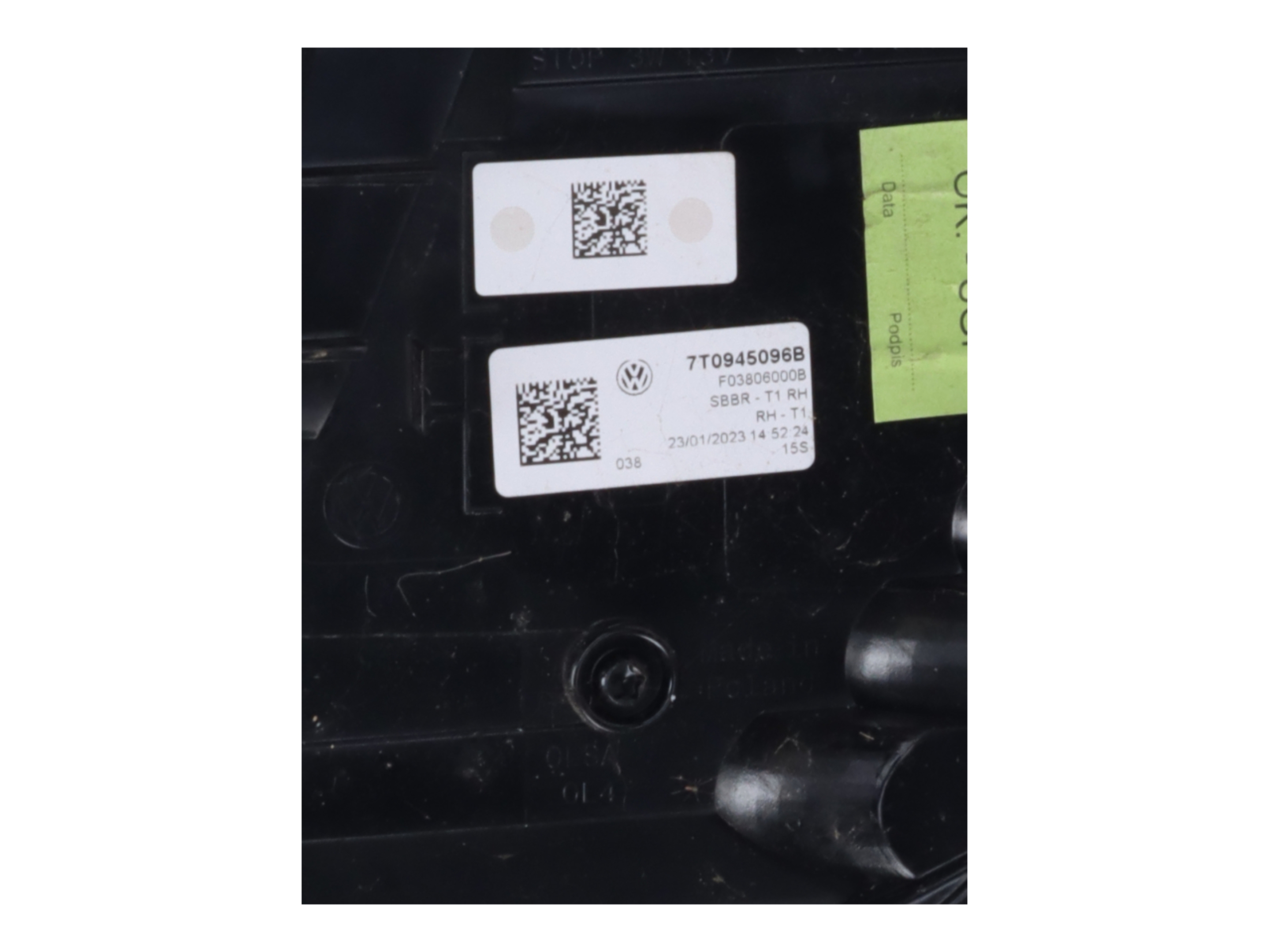 00A - Überhang hinten kurz : 0IC - Einbau Differenzierung für Getriebe"DQ400" -- Fahrzeugteile -- : 0JD - Gewichtsklasse Vorderachse Gewichtsbereich 4 : 0K3 - Hybrid-Antriebssystem PHEV : 0S0 - Ohne Unterfahrschutz : 0TC - Fußmatten vorn : 0VC - Bordliteratur in Deutsch : 0Y1 - Standard-Klimazonen : 0YD - Gewichtsbereich 4 nur Einbausteuerung keine Bedarfsprognose : 1A1 - Kraftstoffsystem Otto-Einspritzer mit rücklauffreiem Einspritzsystem : 1AE - BRS für Fahrzeuge mit E-Antrieb (ESC und eBKV) : 1BA - Federung/Dämpfung Standard : 1EX - Spezielles Typschild für EG für M1-Pkw : 1G0 - ohne Reserverad : 1HZ - Hinweisschilder ohne Ländergruppe : 1LB - Scheibenbremsen vorn : 1M6 - Anhängevorrichtung mechanisch schwenkbar und elektrisch auslösbar : 1N3 - Servolenkung geschwindigkeitsabhängig (Servotronic) : 1NL - Abdeckungen für Leichtmetallräder : 1PB - Radschrauben abschließbar : 1S1 - Bordwerkzeug und Wagenheber : 1T9 - Verbandmaterial mit Warndreieck und Warnweste : 1U3 - Multifunktions-Tisch : 1X0 - Frontantrieb : 1Z0 - Serienkraftstoff-Erstbefüllung : 2DF - Fahrzeugklassen-Differenzierung -7T0- : 2FE - Ledermultifunktionslenkrad mit Tiptronic : 2H0 - Ohne "drive select" : 2P2 - Ladekantenschutz in Edelstahl : 2RA - Schriftzugsatz : 2WM - Zusätzliche Winterbereifung : 3CA - Ohne Trennwand : 3FA - Ohne Dacheinsatz (Volldach) : 3N0 - Ohne Ablagekästen im Kofferraum : 3QH - Dreip.Automatikgurte vorn mit Gurt- und Endbeschlagstraffer und : Höheneinstellung : 3RJ - Heckklappe mit Fensterausschnitt : 3SB - Normalsitz vorn rechts : 3TB - Normalsitz vorn links : 3U3 - Gepäckraumabdeckung mit Gepäcknetz : 3VN - 3 Einzelsitze : 3W6 - Erweiterte Innengeräuschdämpfung : 3ZB - Dreip.Automatikgurte hinten außen mit ECE-Label : 4A4 - Sitzheizung für Vorder-/u.Hintersitze getrennt regelbar : 4BI - Abgaskonzept EU6 AP : 4C1 - Zwei Sitze : 4D0 - Ohne Sitzbelüftung/Massagesitze : 4E9 - Servoschließung Heckklappe mit Innenbetätigung : 4FH - Seitenfenster fest im Lade-/Fahrgastraum links : 4G3 - Mit Ausweichunterstützung mit Abbiegeassistent : 4GF - Frontscheibe Wärmeschutzglas : 4I6 - Zentralverriegelung "Keyless-Go" : 4JH - Seitenfenster fest im Lade-/Fahrgastraum rechts : 4L6 - Sicherheitsinnenspiegel automatisch abblendbar : 4S1 - Armlehnen für beide Vordersitze : 4UF - Airbag FS und BFS ohne Knieairbag mit BFS-Deaktivierung : 4Z5 - Handschuhfachklappe mit Leuchtem : 5BG - Trittverstärkter Teppichbodenbelag im Fahrgastraum : 5F1 - UWB fähiges Land und Trägerfrequenz 433 92 bis 434 42Mhz : 5FA - Ohne zusätzliche Ablagen im Fahrerhaus : 5K7 - Transportschutzfolie (Mindestschutz) mit zus.Transportschutzmaßnahmen : 5MC - Dekor-Einlagen : 5Q4 - Schiebetür links elektrisch : 5R4 - Schiebetür rechts elektrisch : 5XJ - Sonnenblenden mit Spiegel beleuchtet mit Airbag-Label auf Sonnenblende und B- : Säule : 6A0 - ohne Feuerlöscher : 6C6 - Seitenairbag vorn plus Kopfairbag vorn und hinten und Interaktionsairbag vorn : 6D7 - Armlehnen hinten : 6E1 - Mittelarmlehne vorn : 6FJ - Außenspiegelgehäuse schwarz : 6I1 - Spurhalteassistent : 6KF - Kühlerschutzgitter : 6N0 - ohne Schmutzfänger : 76C - Ladekabel Mode3 Typ2 3 16A : 7AL - Diebstahlalarmanlage Innenraumüber- wachung Back-up-Horn und : Abschleppschutz : 7J2 - FPK-Medium : 7K1 - Reifendruckkontrolle : 7UT - Navigationsgerät-Standard mit Media und Internet Paket : 7VL - Wasserzusatzheizung m. Funkfernbedienung : 7W0 - Ohne erweitertem Sicherheitssystem : 7X5 - Parklenkassistent : 7Y0 - Ohne Spurwechselassistent : 8AR - Optionsinfotainment (MIB3) : 8G5 - Multipler Matrix-Beam : 8GJ - DC/DC Wandler 3 0 KW : 8IU - LED- Hauptscheinwerfer mit variabler Lichtverteilung : 8J3 - Front Assist mit Warnen und Bremsen auf Fahrzeuge Fußgänger und Radfahrer : 8N6 - Scheibenwischer-Intervallschaltung mit Licht/Regensensor : 8Q5 - Leuchtweitenregulierung autom/dynamisch mit Kurvenfahrlicht (AFS 1) : 8QJ - Schlüssel für Schließsystem mit Fernbedienung : 8RM - 8 Lautsprecher ( passiv ) : 8T8 - Automatische Distanzregelung (mit follow to stop) und Speed- Limiter : 8U0 - Ohne Zusatzgeräte Wegstreckenmessung : 8VG - LED-SBBR-Leuchte : 8WF - Allwetterlicht : 8Z5 - Nicht Heissland : 9A0 - Ohne Taxi Alarmanlage : 9AH - Climatronic mit 2. Verdampfer und 2. Heizung : 9D0 - ohne Vorbereitung Einbau Funkgerät : 9I5 - Tagesfahrlicht mit Assistenzfahrlicht u.Coming- u. Leaving- home Funktion : automatisch : 9IJ - Komforttelefonie mit LTE und Wireless charging : 9JC - Raucherausführung : 9KA - Ohne Erkennungsleuchten : 9P4 - Gurtkontrolle E-Kontakt vorn und hinten optisch und akustisch : 9TJ - Zus.LED-Warnleuchten (Türbereich) vorn : 9WJ - Wired & Wireless App-Connect : A8Z - Multivan Highline : AV1 - Rechtsverkehr : B01 - Typprüfland Deutschland : B0A - Bauteilesatz ohne länderspezifische Bauvorschrift : C06 - Betriebserlaubnis Nachtrag : DP2 - 4-Zylinder-Ottomotor 1 4L/110 KW TSI Hybrid Grundmotor ist : TH8/T9D E0A - Keine Aktionsausführung : EL5 - Online-Dienst mit OCU mit Head Unit Codierung ohne WFS- Verbund : EM1 - Müdigkeitserkennung : ER1 - Regionscode " ECE " für Radio : EV3 - Ladekabel Mode 2 Typ2 / E+F (10A) : F0A - Kein Sonderfahrzeug Standard-Ausführung : FS7 - 7 Sitze : G1A - 6-Gang-Automatikgetriebe : GW2 - Car2X High Variante : IG0 - Leergewichtsbereich Standard : IM0 - Vorderachsgewicht Standard : IN0 - Hinterachsgewicht Standard : IS0 - Ohne Schnittstelle für externe Nutzung : J16 - Reifen 235/50 R18 101H xl : J2D - Batterie 380A (68Ah) : K4H - Geschlossener Aufbau : KA0 - ohne Kamerasysteme/Umfeldsensorik : KS0 - Ohne Head-Up Display : L0L - Linkslenker : N2S - Sitzbezüge in Alcantara : NY0 - Batterie/Generator Kapazität Standard : NZ2 - Pan-European-eCall : P2C - Automatische Distanzregelung ACC "stop & go" mit Geschwindigkeitsbegrenzer : inklusive Car2X : PAC - Ohne Kamerasysteme (Abwahl Rückfahrkamera "Rear View") : QC1 - Glas im Fond dunkel eingefärbt vorn Wärmeschutzglas : QE4 - Ablagenpaket 2 : QH1 - Sprachs