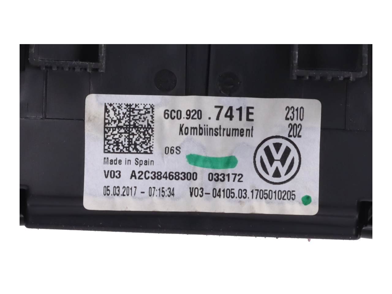 0A2 - 4 Türen : 0AQ - Stabilisator vorn : 0EJ - Einbau Differenzierung für Getriebe"MQ 250" -- Fahrzeugteile -- : 0F5 - Kraftstoffsystem Diesel : 0FB - Fertigungsablauf Pamplona : 0KZ - Aufkleber für Aktionsausführungen : 0N2 - Hinterachse verstärkt : 0NA Ohne Schriftzugsatz (ohne Typbezeichnung) : 0P6 - Abgasendrohr hinten : 0RA - Ohne Zündanlaß/Schloß-Sperrsystem : 0TD - Fußmatten vorn und hinten : 0VC - Bordliteratur in deutsch : 0Y1 - Standard-Klimazonen : 0YJ - Gewichtsbereich 9 nur Einbausteuerung keine Bedarfsprognose : 1AT - Elektronisches Stabilisierungsprogramm (ESP) : 1C1 Frostschutz bis -25 Grad Celsius Toleranz bis -30 Grad C : 1D0 - Ohne Anhängevorrichtung : 1E0 - Ohne Aktivkohlebehälter : 1EX - Spezielles Typschild für EG für M1-Pkw : 1G1 - Reserverad platzsparend : 1JP - Dämpfung hinten : 1KT - Scheibenbremsen hinten (Geomet D) : 1L0 - Normalluftfilter : 1N3 Servolenkung geschwindigkeitsabhängig (Servotronic) : 1NL - Abdeckungen für Leichtmetallräder : 1PA - Radschrauben Standard : 1S1 - Bordwerkzeug und Wagenheber : 1SA - Ohne zus. Triebwerks-Unterschutz : 1T9 - Verbandmaterial mit Warndreieck und Warnweste : 1W2 - Handschuhfach-Kühlung : 1X0 - Frontantrieb : 1Y0 - Ohne Differenzialsperre : 1Z0 - Serienkraftstoff-Erstbefüllung : 1ZG - Scheibenbremsen vorn (Geomet D) : 2A0 - Ohne Überführungsausrüstung : 2G5 - Einfüllstutzen-Modul 1 ohne Einsatz : 2H0 - Ohne "drive select" : 2JG - Stoßfänger in Wagenfarbe : 2KW Aufkleber/Schilder deutsch-französisch- holländisch : 2PH - Lederlenkrad : 2UA - Normalausführung : 2V5 - Frischluftansaugung mit Aktivkohlefilter : 2WA - ohne zusätzliche Bereifung : 3B4 - Kindersitzverankerung für Kindersitzsystem ISO FIX : 3C7 - Dreipunkt-Automatikgurt für mittleren Fondsitz : 3FA - Ohne Dacheinsatz (Volldach) : 3GD - Ebener Ladeboden hinten : 3H0 - Ohne Lehnenentriegelung für Vordersitze : 3J1 - Kopfstützen für Vordersitze höhenein- stellbar : 3L3 - Höheneinstellung manuell für Vordersitze : 3LV - Tür und Seitenverkleidung für Aktionsausführungen : 3M0 - Ohne Sonder-Maßnahmen : 3NC Rücksitzbank/-lehne geteilt umlegbar : 3P1 - Halterung für Verbandkasten/Warndreieck : 3Q6 - Kopfstützen hinten (3 Stück) : 3S0 - Ohne Dachreling / Dachlastträger : 3U1 - Gepäckraumabdeckung klappbar : 3W3 - besondere Innengeräuschdämpfung : 3ZB - Dreip.Automatikgurte hinten außen mit ECE-Label : 4A3 - Sitzheizung für Vordersitze getrennt regelbar : 4I2 - Zentralverriegelung m. Funkfernbedienung Innenbetätigung ohne : Safesicherung : 4KF - Scheiben seitlich in Wärmeschutzver- glasung ab B-Säule und : hinten dunkel : eingefärbt : 4L6 - Sicherheitsinnenspiegel automatisch abblendbar : 4N1 - Gepolsterte Armaturentafel : 4P2 - Modul Boden hinten Ausführung 3 : 4QV Dreip.Automatikgurte vorn mit elektr. Gurtstraffer und : Höheneinstellung : 4R3 - Fensterheber mit Komfortschaltung elektrisch : 4U5 - Gepäcktaschen an Rückenlehnen : 4UF - Airbag für Fahrer und Beifahrer mit Beifahrer-Airbag- Deaktivierung : 4X1 - Seitenairbag vorn : 5D1 Trägerfrequenz 433 92 bis 434 42 Mhz : 5K7 Transportschutzfolie (Mindestschutz) mit zus. : Transportschutzmaßnahmen : 5RQ - Außenspiegel rechts konvex : 5SL - Außenspiegel links asphärisch : 5XJ - Sonnenblenden mit Spiegel beleuchtet mit Airbag-Label auf : Sonnenblende und B- : Säule : 6A0 - ohne Feuerlöscher : 6E1 - Mittelarmlehne vorn : 6FF - Außenspiegelgehäuse und diverse Anbauteile in Wagenfarbe : 6K0 - ohne Frontassist/ohne City-ANB : 6KA - Kühlerschutzgitter : 6NA - Formteilhimmel ungeteilt : 6P1 - Kennzeichenträger hinten (ECE) : 6PC - Handbremshebelgriff in Leder : 6Q2 - Schalthebelknopf/-Griff in Leder : 6R1 - Schalthebelstulpe in Kunstleder : 6T4 - Innenleuchte im Fußraum : 6U0 - Ohne zus. Dichtungen außen : 6W1 - Kennzeichenträger vorn (groß) : 6XD Außenspiegel elektr. einstell-/beheizbar : 7AA - Wegfahrsperre elektronisch : 7E6 - Elektrische Luftzusatzheizung : 7K1 - Reifendruckkontrolle : 7L6 - Start/Stopp-Anlage mit Rekuperation : 7MM Abgaskonzept EU6 plus : 7P0 - Ohne Lendenwirbelstütze in den Sitzlehnen : 7Q0 - Ohne Navigationsgerät : 7QA - Ohne CD/DVD für Navigation : 7X2 - Einparkhilfe vorn und hinten : 7ZL - Fahrzeugklassen-Differenzierung -6C0- für Bauzustand Europa : 8FA - ohne 2. Batterie : 8GU - Drehstromgenerator 140 A : 8ID - Halogen-Doppelscheinwerfer : 8K3 Tagesfahrlicht mit Assistenzfahrlicht und coming home Funktion : 8M1 - Heckscheiben-Wisch-Waschanlage mit Intervallschaltung : 8N6 Scheibenwischer-Intervallschaltung mit Licht/Regensensor : 8Q1 - Leuchtweitenregulierung : 8RL - 6 Lautsprecher (passiv) : 8S3 - Zusätzliche Leseleuchten hinten : 8SG - SBBR-Leuchten Normalausführung (Ausf.2) : 8T2 - Geschwindigkeitsregelanlage (GRA) elektronisch : 8TC - Nebelschlussleuchte Rechtsverkehr : 8W1 - Waschwasser-Standanzeige : 8WH Nebelscheinwerfer und Abbiegeleuchte : 8X1 - Scheinwerferreinigungsanlage : 8Y1 - Doppelton-Signalhorn : 8Z5 - Nicht Heissland : 8ZQ - Antenne nur für FM Empfang Diversity : 9AK - Climatronic mit Stauluftregelung FCKW-frei : 9E1 - Gepäckraumbeleuchtung : 9JD - Raucherausführung Ascher vorn : 9P3 - Gurtkontrolle E-Kontakt im Gurtschloss : 9S5 - Multifunktionsanzeige/Bordcomputer "Medium" : 9T1 - Scheibenwaschdüsen beheizbar vorn : 9W0 Ohne Vorbereitung/Einbau Auto-Telefon : 9WC - Ohne Multimedia" im Fahrzeug : A61 - Kategorie 1 : A8M - Gehobene Komfort-Ausstattung : AV1 - Rechtsverkehr : B01 - Typprüfland Deutschland : B0A - Bauteilesatz ohne länderspezifische Bauvorschrift : C28 - Betriebserlaubnis Nachtrag : C6W Leichtmetallräder 6J x 15 : DV1 3-Zylinder-Dieselmotor 1 4 L/66 KW TDI Common-Rail : Grundmotor ist : T0H/T7M : E2F - "Sound" : EA8 Anschlussgarantie 3 Jahre max. 100.000 km : EF0 - Ohne ECO-Funktion : EL0 - Ohne Online Dienst : EM1 - Müdigkeitserkennung : ER1 - Regionscode " ECE " für Radio : F0A - Kein Sonderfahrzeug Standard-Ausführung : FC0 - Ohne Individualeinbau : G0C - 5-Gang-Schaltgetriebe 